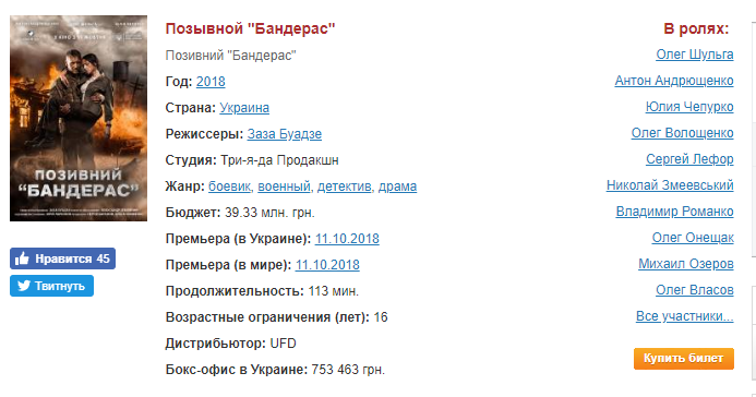 Украинский фильм "Позывной Бандерас" провалился в прокате. Об этом говорят данные бокс-офиса, размещенные на сайте "Кино-театр.ua".