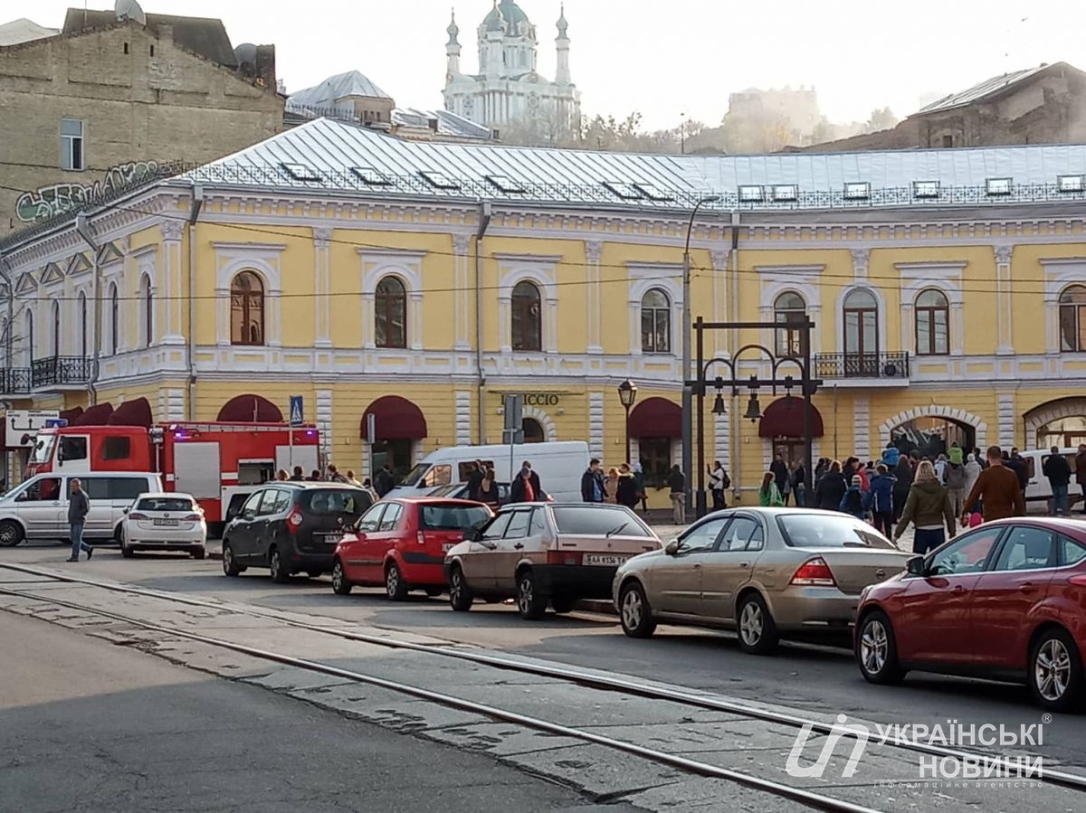 Пожар возник на столичной Контрактовой площади, Подольский район. На фото в сети видно, что пожар довольно сильный, о причинах возгорания пока неизвестно. Черный дым поднялся в воздух на высоту не менее ста метров.