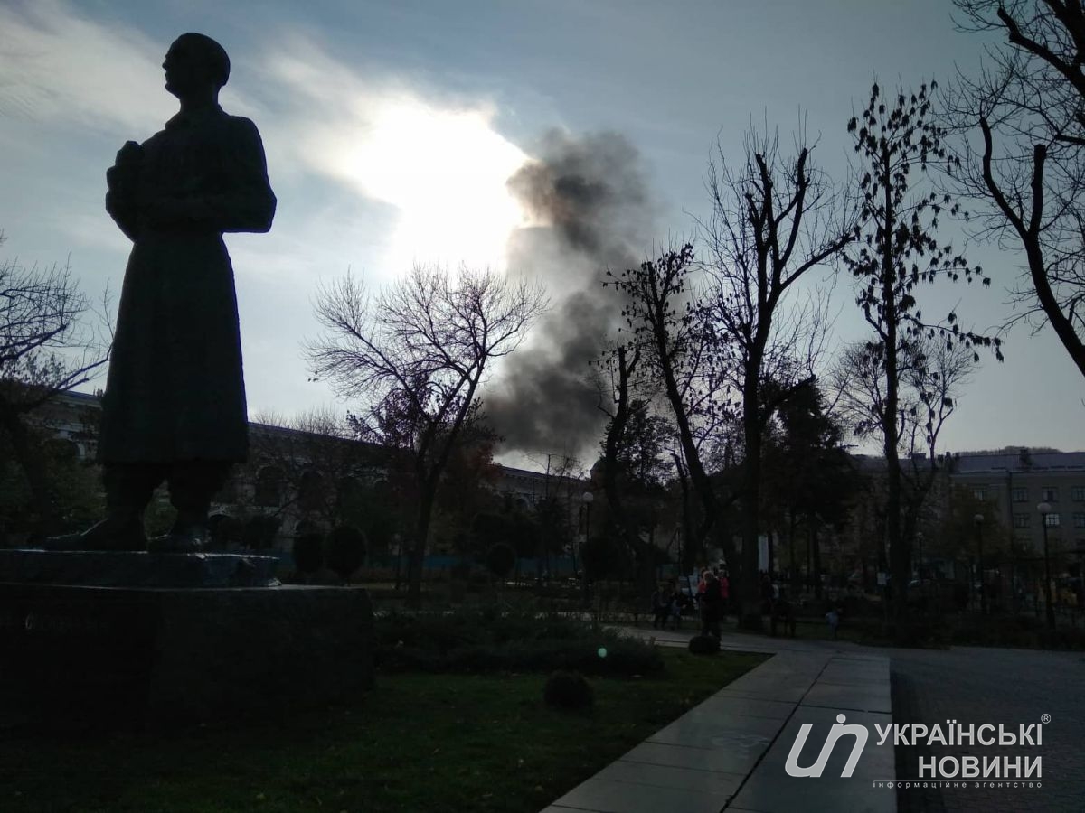 В Киеве горит здание возле посольства Нидерландов, над городом поднимаются клубы черного дыма. Фото