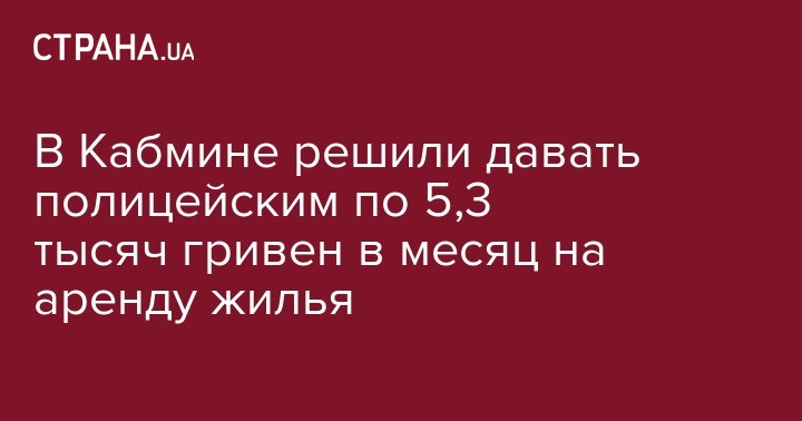 В Кабмине утвердили ежемесячную денежную компенсацию за наем жилья полицейским. Ее предусмотрели в размере 5,3 тыс. гривен. Об этом говорится в постановлении правительства №866 от 24 октября, передают Украинские новости.