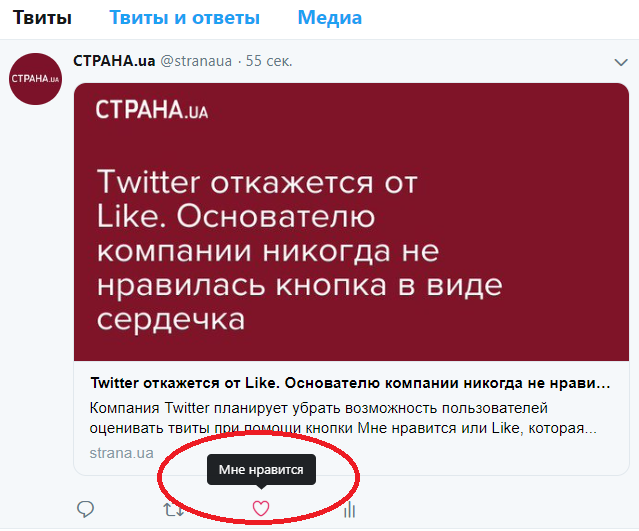 Кнопку "Мне нравится" из Twitter уберут Фото: twitter.com/stranaua