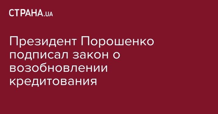 Президент Украины Петр Порошенко подписал закон № 6027-д о возобновлении кредитования. Об этом он сообщил во время встречи с представителями украинского бизнеса, сообщает "112 Украина".