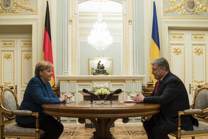 Порошенко разговаривал с коллегой так, будто видит ее в последний раз. Он вспомнил, читая по бумажке, как сам 14 раз ездил в гости к Меркель, как они с Франсуа Олландом 19 часов вели переговы в Минске, многократно называя Германию другом Украины.