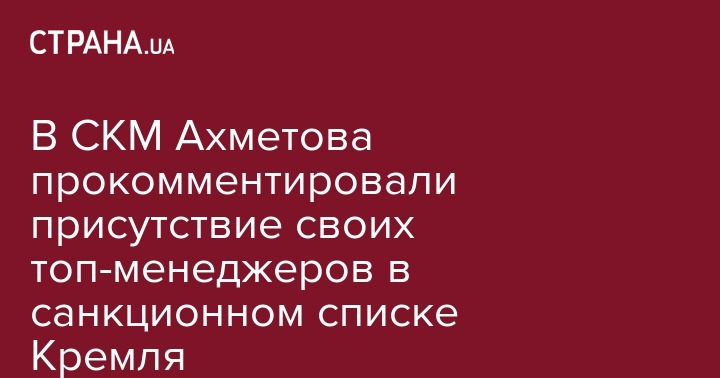 В холдинге Рината Ахметова СКМ прокомментировали "Стране" присутствие своих ключевых менеджеров в санкционном списке, утвержденном правительством России. "Мы изучаем влияние присутствия в санкционных списках на бизнес SCM", - заявили "Стране" в холдинге.