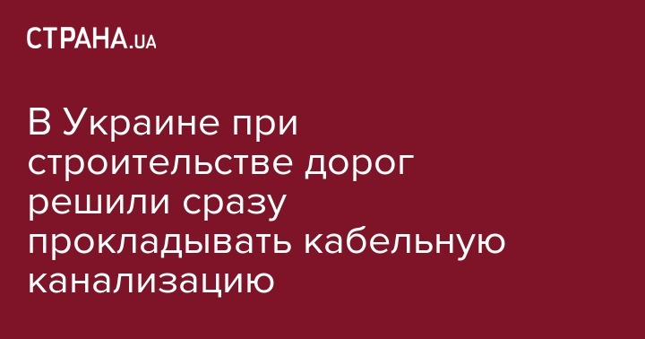 При строительстве и реконструкции дорог в Украине теперь нужно будет обязательно прокладывать кабельную канализацию. Соответствующую норму инициирует Министерство инфраструктуры Украины, пишет "Интерфакс".