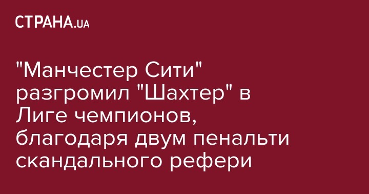 "Манчестер Сити" разгромил "Шахтер" в Лиге чемпионов, благодаря двум пенальти скандального рефери