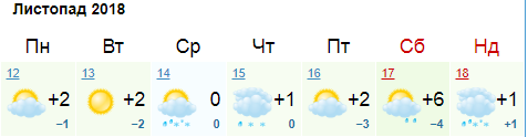 Мeteoprog.ua дает следующий прогноз на неделю в Киеве: днем от +2 до +4. Ночью +1...-4. Мокрый снег возможен в воскресенье, 18 ноября.