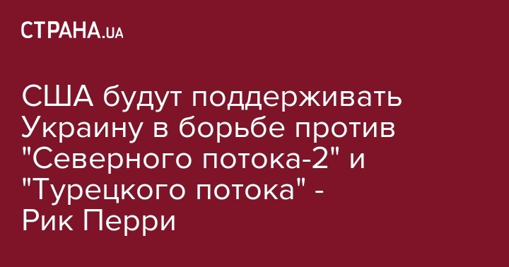 США будут поддерживать Украину в борьбе против "Северного потока-2" и "Турецкого потока" - Рик Перри