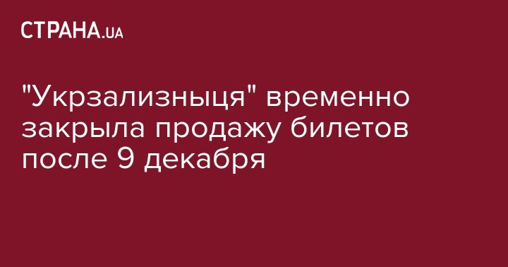 "В связи с проведением строительных и подготовительных работ до начала запуска движения скоростных поездов Киев - аэропорт "Борисполь", "Укрзализныця" вносит некоторые изменения в графики движения пассажирских и пригородных поездов. Поэтому продажа билетов на поезда дальнего следования, которые будут отправляться после 9 декабря 2018, временно не производится. По мере корректировки графиков движения поездов продажа билетов на них будет открываться", - говорится в сообщении.