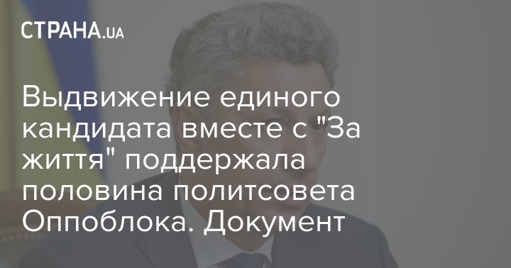Половина политсовета партии "Оппозионный блок" поддержала выдвижение единого кандидата на выборах президента-2019 вместе с "За життя". Об этом сказано в протоколе политсовета Оппоблока от 12 ноября, которым располагает "Страна".