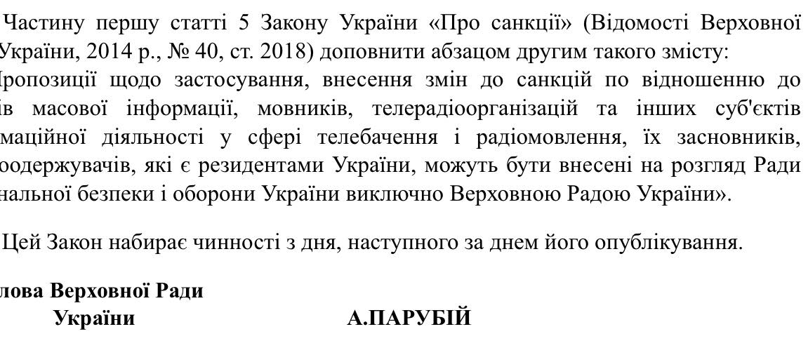 По его словам речь идет о проекте Закона Украины от 07.11.2018 г. N 9275 "О внесении изменений в некоторые законы Украины относительно защиты информационного пространства".