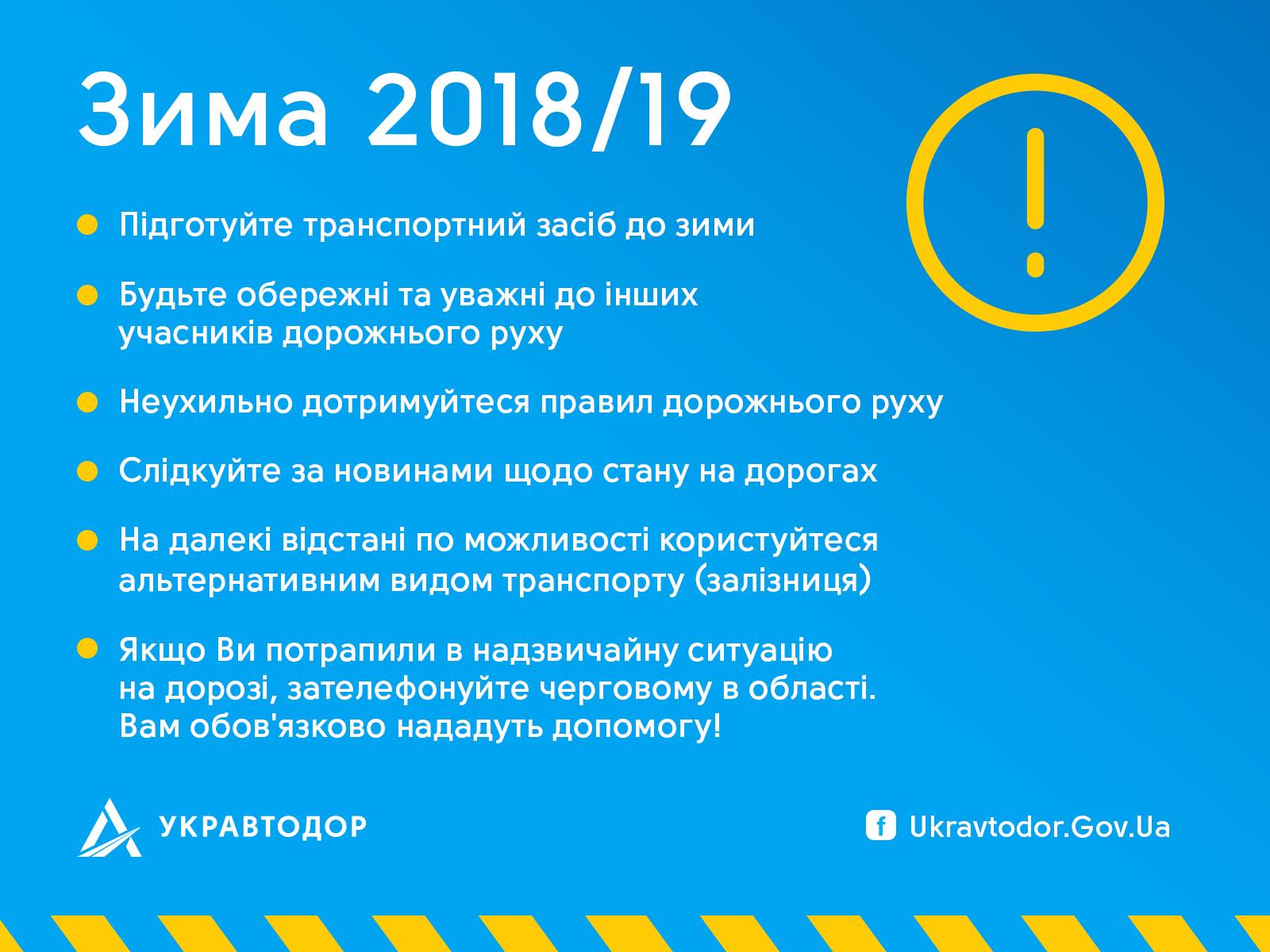 А еще накануне, 13 ноября, "Укравтодор" опубликовал на своем сайте памятку для водителей, в которой указано, что необходимо сделать при подготовке к зиме 2018/ 2019. При этом материал вышел под заголовком "Как бы нам этого не хотелось, но winter is coming".