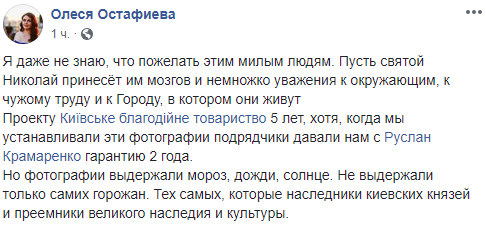 Сегодня, 14 ноября, киевляне стали свидетелями последствий жестокого акта вандализма по улице Ярославов вал, 15. Неизвестные "художники" закрасили разноцветными баллончиками фотографии старинных портретов, которые были созданы в рамках проекта Киевского благотворительного общества.