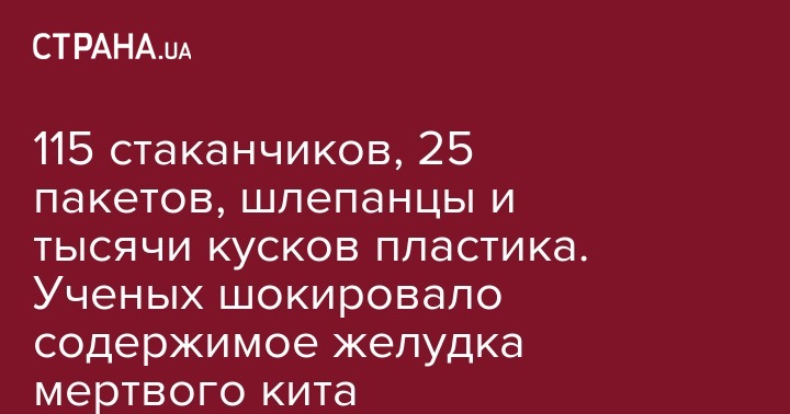 В желудке находилось 115 пластиковых стаканчиков, четыре бутылки, 25 пакетов, два шлепанца, нейлоновый мешок и еще около тысячи пластиковых фрагментов.