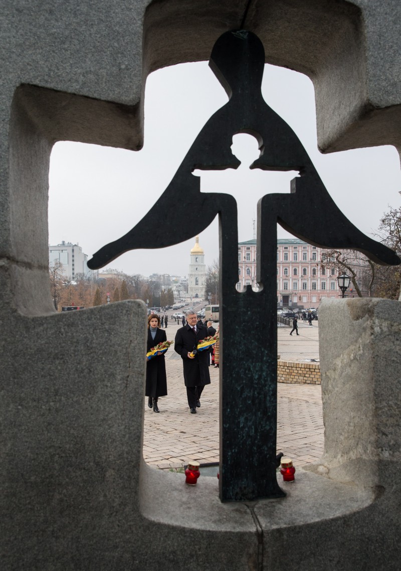 Мероприятия при участии президента прошли на Михайловской площади в Киеве, у Памятного знака жертвам Голодомора 1932-1933 годов в Украине. Петр и Марина Порошенко возложили  колосковые композиции к мемориалу. Также у памятного знака были установлены зажженные лампадки.