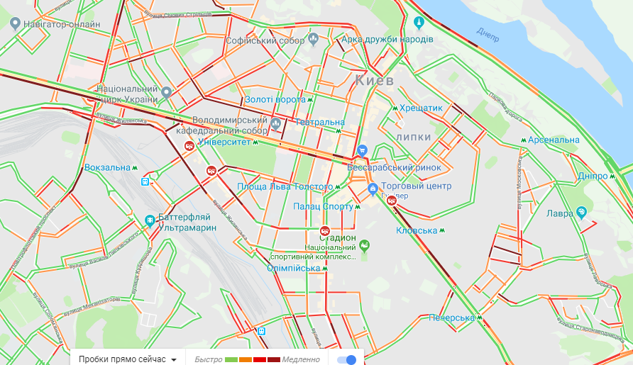 Движение затруднено также в районе станций метро: "Кловская", "Университет", "Олимпийская", "Театральная", "Арсенальная" и "Дворец Украина". Масштабные пробки образовались и на Левом берегу Киева около станций метро "Левобережная" и "Черниговская". Отметим, что на Левом берегу сильнее всего загружен бульвар Перова.