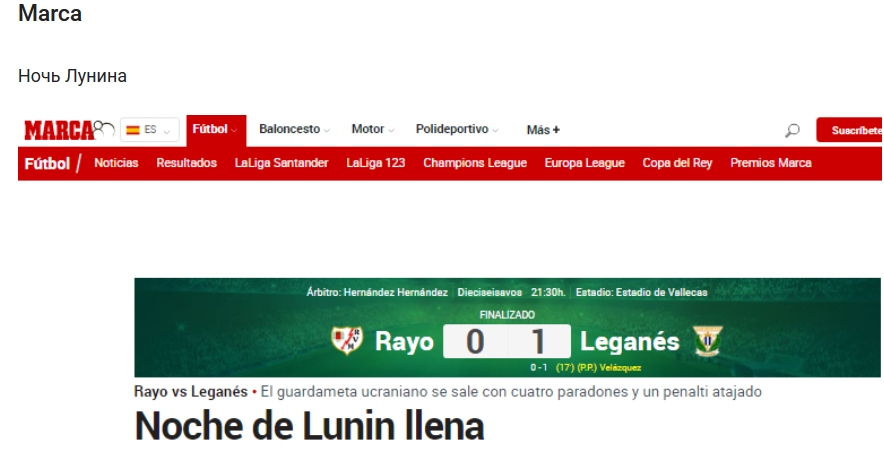 Вчера, 4 декабря, украинский вратарь Леганеса Андрей Лунин сотворил настоящее чудо в Кубке Испании. Он совершил несколько умопомрачительных сейвов и даже парировал пенальти в ответном матче 1/16 финала Кубка Испании против Райо Вальекано.
