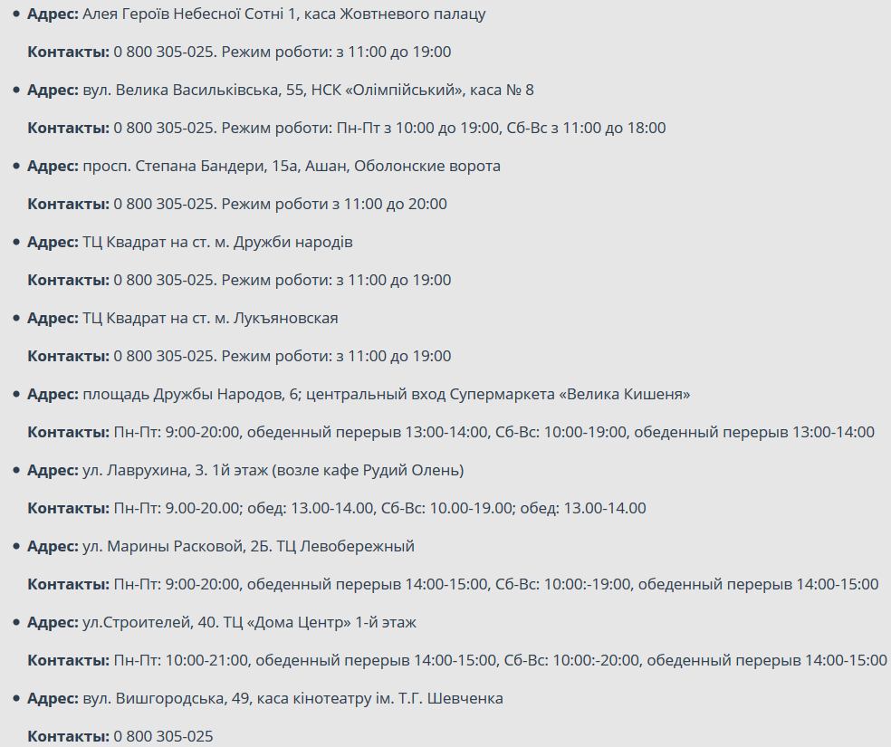 - в розничной торговой сети Киева, по следующим адресам.