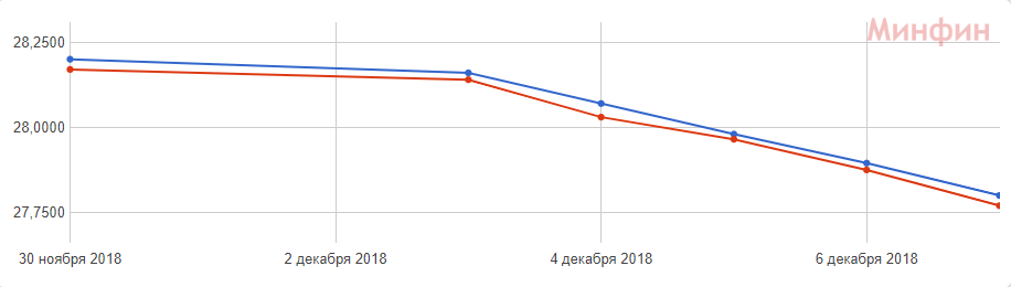 По данным НБУ, справочный курс гривни к доллару США на межбанковском валютном рынке 7 декабря укрепился до 27,8261 грн/$1 с 27,8815 грн/$1.