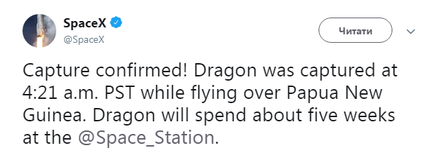 Об этом сообщила пресс-служба компании SpaceX в своем твиттере. Трудности при стыковке возникли из-за проблем со связью.