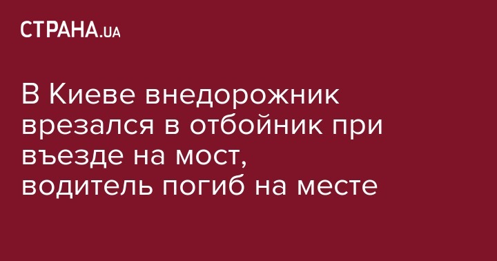 В Киеве внедорожник врезался в отбойник при въезде на мост, водитель погиб на месте