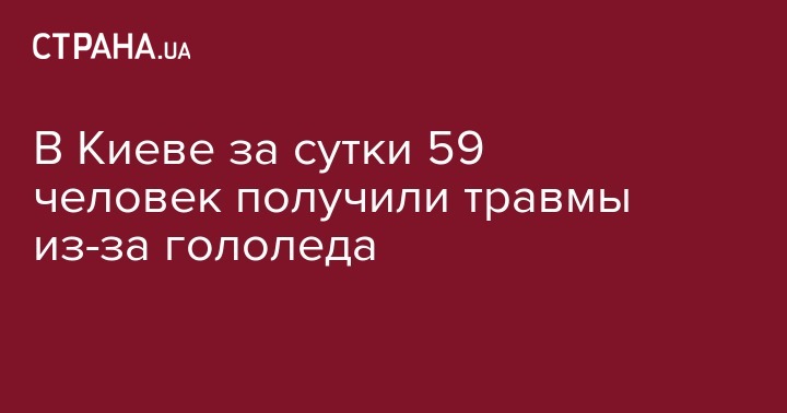 В столице за последние сутки из-за гололеда травмировались 59 человек, 9 из них получили серьезные повреждения. Об этом УНН сообщила советник директора Департамента здравоохранения КГГА Наталья Вишневская.
