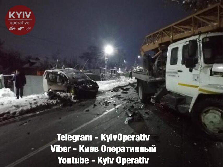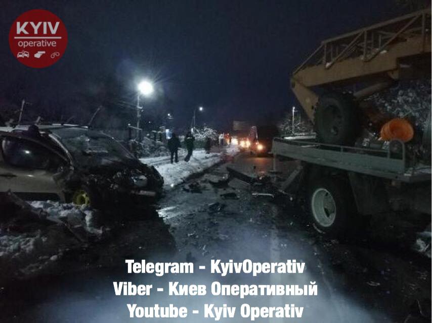 Погиб пассажир автомобиля, который врезался в автокран под Киевом, у водителя - перелом ключицы. Фото