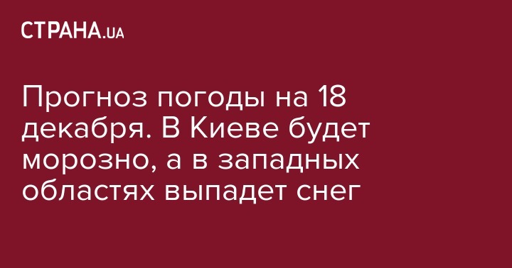 В западных регионах ожидаются небольшой снег и легкий мороз. Днем -1...-3 градуса, ночью -3...-5 градусов. В Ужгороде воздух днем может прогреться до +1. В столице 18 декабря будет морозно. Днем столбик термометра может опуститься до -8, а ночью - до -10 градусов. Осадков не предвидится.