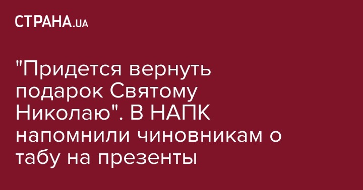 "Придется вернуть подарок Святому Николаю". В НАПК напомнили чиновникам о табу на презенты