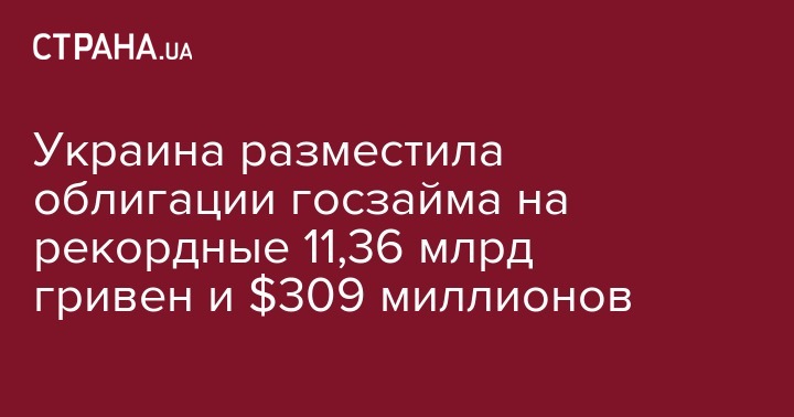Украина разместила облигации госзайма на рекордные 11,36 млрд гривен и $309 миллионов