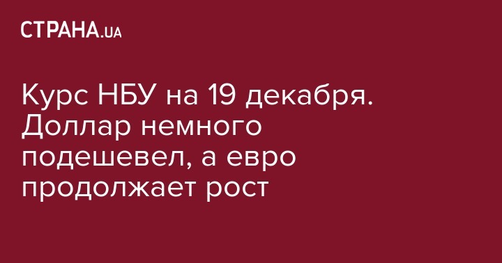 Курс НБУ на среду 19 декабря выглядит следующим образом: