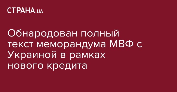 Обнародован полный текст меморандума МВФ с Украиной в рамках нового кредита