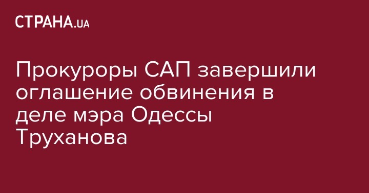 В субботу, 22 декабря, прокуроры САП завершили оглашение в Малиновском райсуде Одессы обвинительного акта по делу Одесского городского головы Геннадия Труханова о заводе "Краян". Рассмотрение уголовного производства по существу начнется 27 декабря, передает Укринформ.