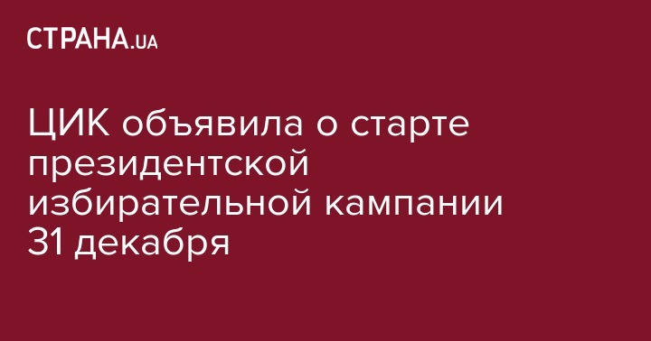 Президентская избирательная кампания в Украине стартует 31 декабря 2018 года. Об этом со ссылкой на постановление Центральной избирательной комиссии Украины сообщает "Интерфакс".