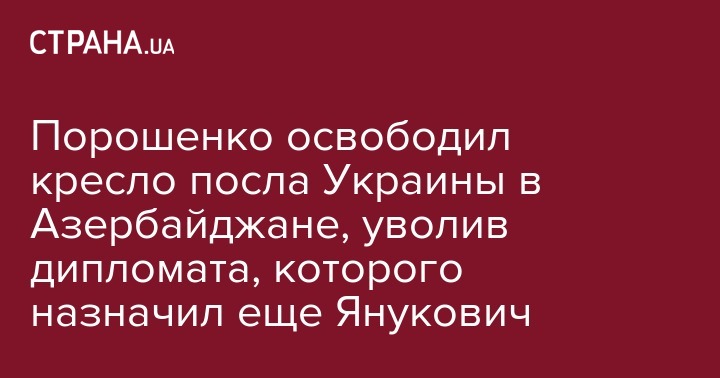 Порошенко освободил кресло посла Украины в Азербайджане, уволив дипломата, которого назначил еще Янукович