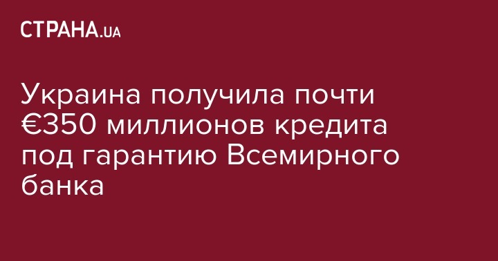 Украина получила почти €350 миллионов кредита под гарантию Всемирного банка