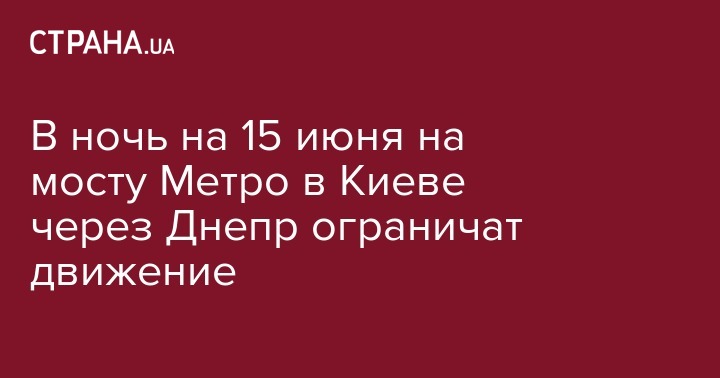 В Киеве на Мосту Метро через Днепр 15 июня с 22:00 и до 6:00 16 июня будет ограничено движение транспорта. Об этом сообщает пресс-служба Киевской городской государственной администрации.