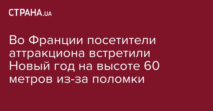 Во французском городе Ренн за несколько часов до Нового года восемь человек оказались заблокированными на неисправном аттракционе на высоте 60 метров. Об этом сообщает радиостанция France Info.