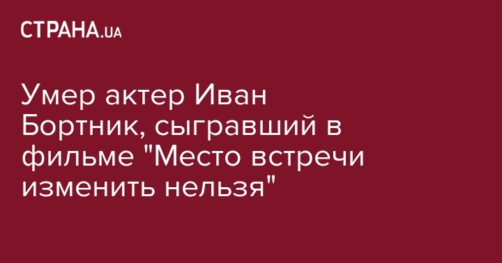 Умер Народный артист России, актер Театра на Таганке Иван Бортник. Об этом передает ТАСС.