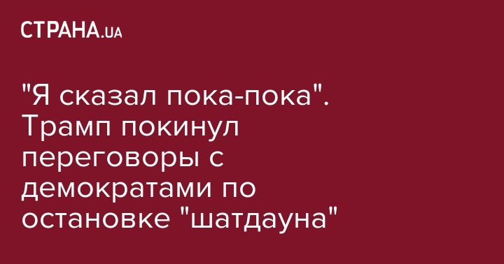Президент Соединенных Штатов Дональд Трамп покинул встречу с лидерами Демократической партии в двух палатах конгресса - Чаком Шумером и Нэнси Пелоси, где стороны должны были обсудить шаги для прекращения остановки правительства ("шатдауна").