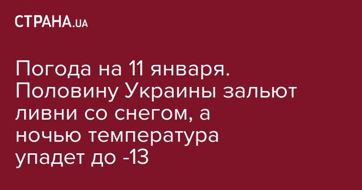 Погода на 11 января. Половину Украины зальют ливни со снегом, а ночью температура упадет до -13