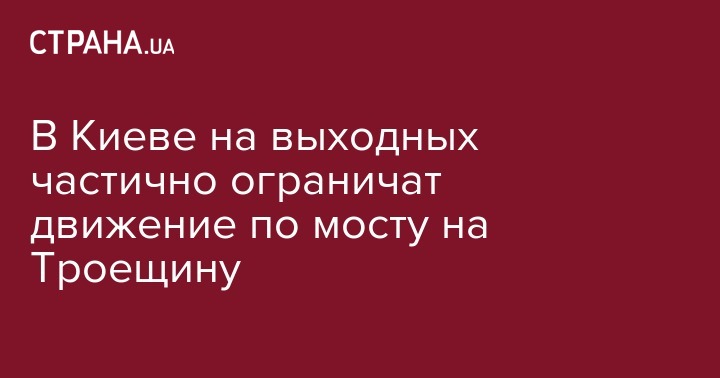 На выходные, 19 и 20 января, с 9:00 до 20:00 на Северном мосту в Киеве будет частично ограничено движение транспорта в направлении Троещины. Об этом инормирует пресс-служба "Киевавтодора".