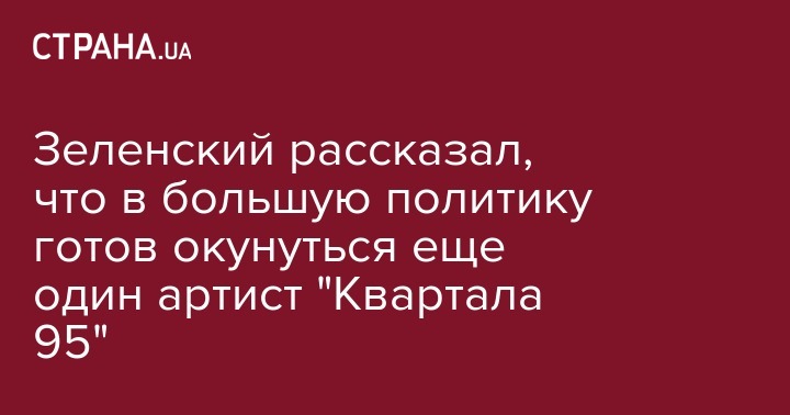 Шоумен и кандидат в президенты Владимир Зеленский заявил, что еще один актер студии "Квартал 95" может уйти в политику. Такое заявление он сделал в интервью "Украинской правде", отвечая на вопрос, кто еще из его команды пойдет с ним в большую политику.