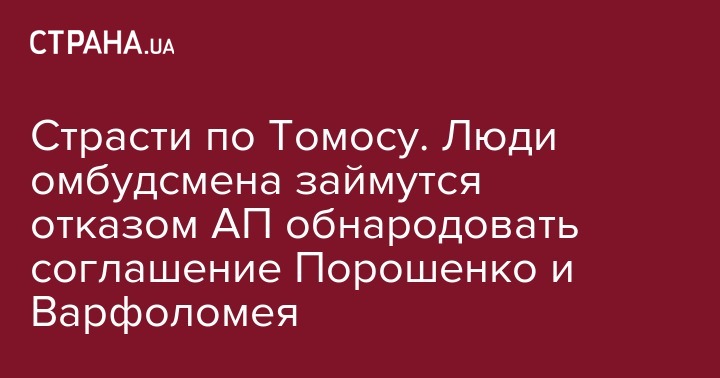 Страсти по Томосу. Люди омбудсмена займутся отказом АП обнародовать соглашение Порошенко и Варфоломея