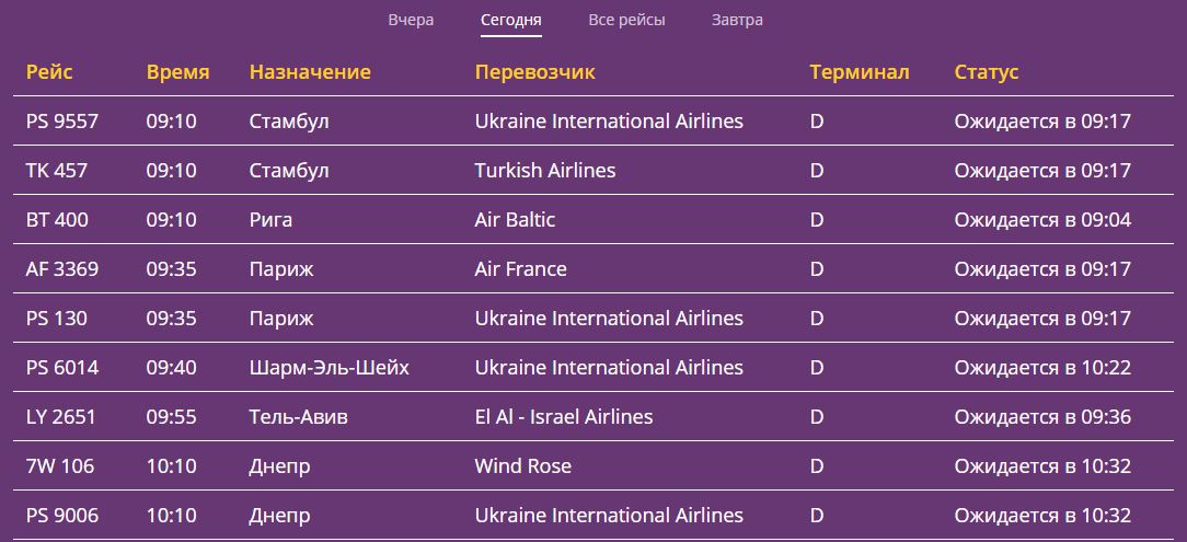 Фото: iev.aero/ru/departures