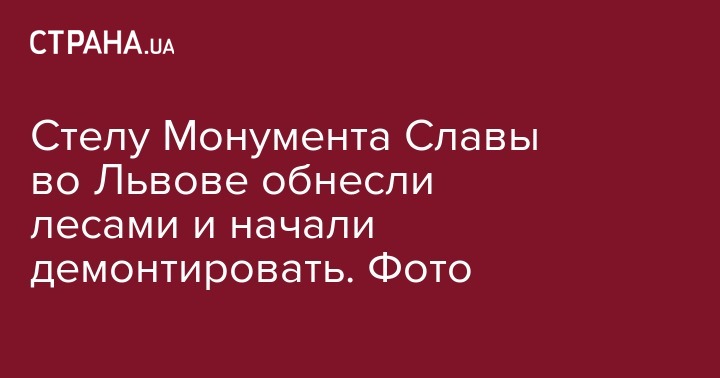 По состоянию на пятницу, 25 января, во Львове обнесли лесами и начали демонтаж аварийной стелы Монумента Славы, которым в начале 2019 года занялись новые подрядчики. Об этом сообщает "Интерфакс"