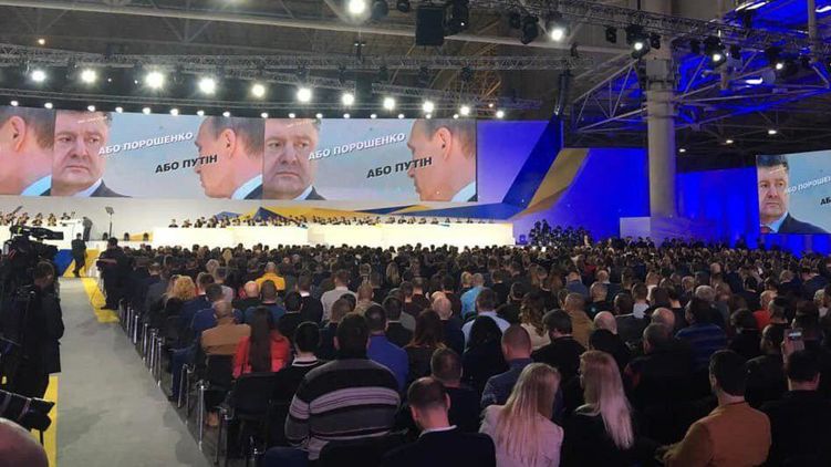 Примерно половина заявлений Порошенко касалась того, что он - самый антироссийский кандидат. Эта "идеологема" выразилась даже в слогане: "Или Порошенко, или Путин", который мелькал на больших экранах в зале МВЦ.