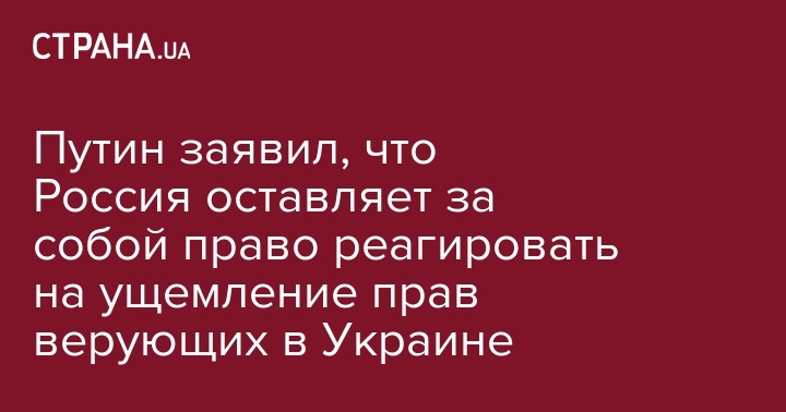Президент России Владимир Путин считает, что в Украине на вопросах церковной жизни в борьбе за власть реализуется проект по спекуляциям и политиканству. Также он заявил, что Россия не вмешивается в ситуацию, но оставляет за собой право реагировать на ущемление там прав человека. Президента РФ цитирует "Интерфакс-Украина"