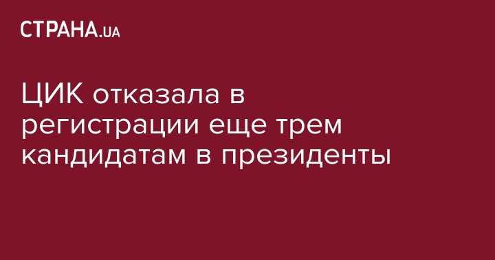 В субботу, 2 февраля, на заседании Центральная избирательная комиссия отказала в регистрации кандидатами на пост президента еще трем лицам. Об этом сообщает "РБК-Украина".