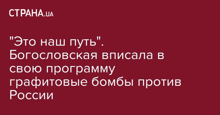 Призывы к созданию графитовых бомб - один из пяти пунктов, в которых заключается стратегия кандидата в президенты по отношению к России. "Украина должна перейти к быстрому производству новых типов оружия. Графитовые бомбы – то, что на сегодняшний день является вызовом, который получил поддержку в международных отношениях. Они не запрещены, и это наш путь", – акцентировала Богословская.